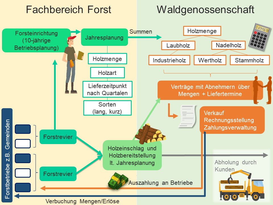 Schema der Zusammenarbeit im Bereich Holzmenge und Holzeinschlag