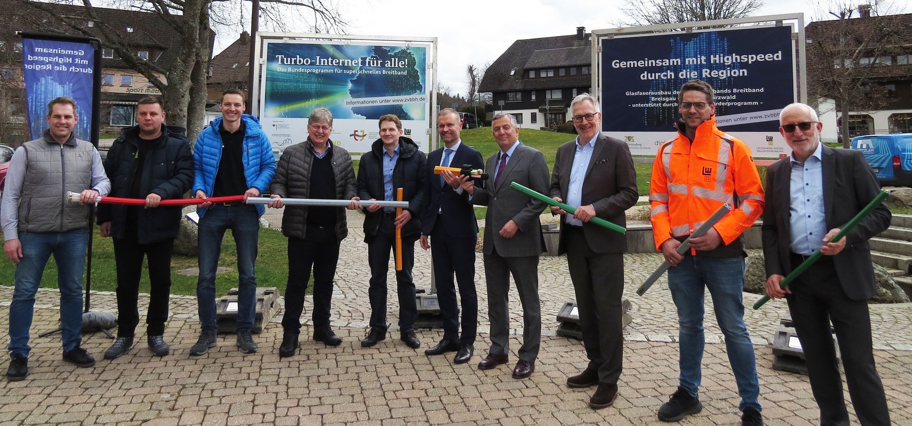 „Für den Ausbau in Hinterzarten ist mit dem Spatenstich ein wichtiger Meilenstein erreicht. Die seit mehr als 30 Jahren durch den Markt versäumte Aufgabe sollen Kommunen in kurzer Zeit nachholen Sie dürfen es nur als freiwillige Leistung erbringen. Solche Projekte sind keine Selbstverständlichkeit“, so der Verbandsvorsitzende Landrat Ante. Bürgermeister Tatsch stimmte zu und fügte hinzu: „Die Zukunft ist nun auch in Hinterzarten angekommen. Der Ausbau mit Glasfaser ist die größte Infrastrukturaufgabe unserer Zeit. Eine Gemeinde darf sie nur als freiwillige Aufgabe leisten. Der Bedarf ist gegeben. Städte und Gemeinden können nicht anders, als im Interesse ihrer Einwohner und Betriebe tätig zu werden“.