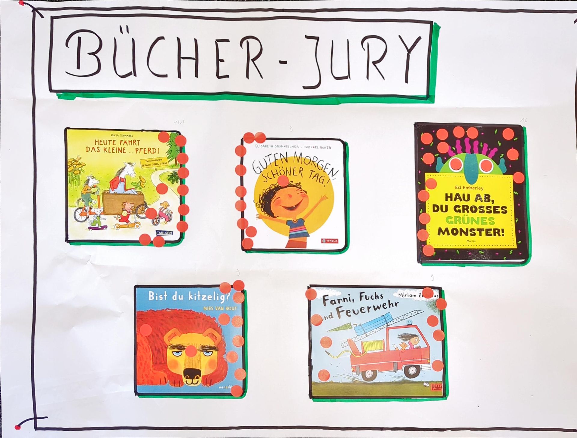 Eine Jury hat zwei neue Bücher ausgewählt, die ab Oktober 2023 in der Bücherkiste zu finden sind. Die Jury bestand aus teilnehmenden pädagogischen Fachkräften der Fortbildungsreihe „Sprach- und Lesekultur in der Krippe“ des Fachbereichs Planung, Qualitätsentwicklung und Bildung sowie aus zahlreichen Kindern, die am Tag der offenen Tür im Jugendamt Breisgau Hochschwarzwald ihre Favoriten ausgewählt haben! Gewonnen haben „Guten Morgen schöner Tag!“ und „Hau ab du großes grünes Monster!“ Wir wünschen viel Spaß beim Vorlesen!