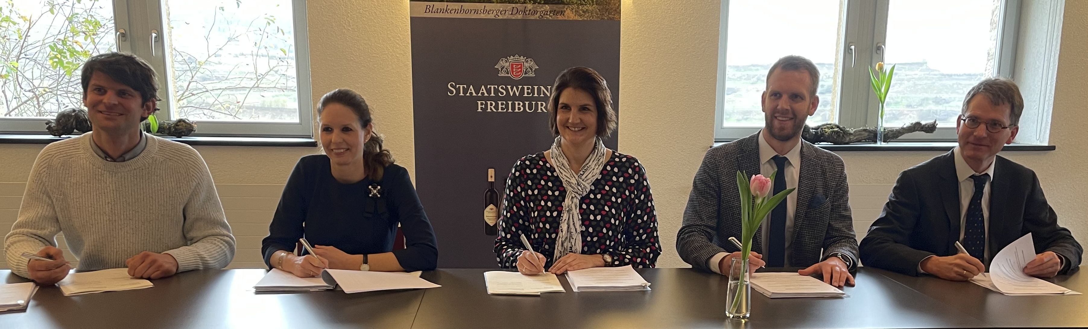 Vertragsunterzeichnung für eine Weinreben-Photovoltaikanlage am Blankenhornsberg in Ihringen