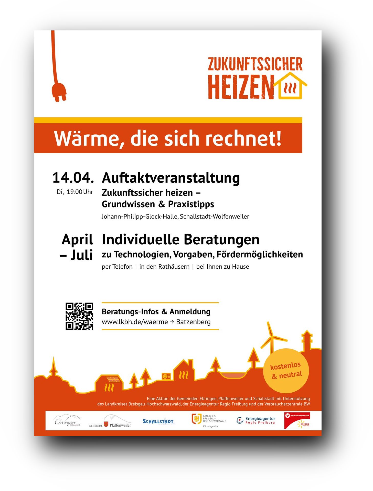 Im Rahmen einer "Wärmekampagne" in Landkreis-Gemeinden sollen Interessierte neutral und verständlich über Technologien, gesetzliche Pflichten und Fördermöglichkeiten informiert werden. Die Kampagne setzt sich zusammen aus einem Informationsabend und einem vielfältigen, neutralen und persönlichen Beratungsangebot für interessierte Haushalte.