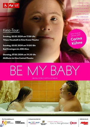 Mit dem Film "Be My Baby" soll das Thema Inklusion in den Fokus gerückt werden. Besonderes Highlight bei der Tour: In Person von Carina Kühne wird eine Hauptdarstellerin des Films mit auf Tour sein. Die junge Schauspielerin und Aktivistin will gemeinsam mit dem Publikum über inklusive Filmkunst und Schauspiel sprechen und aufzeigen, wie wichtig es ist, die Schauspielszene inklusiv zu gestalten.