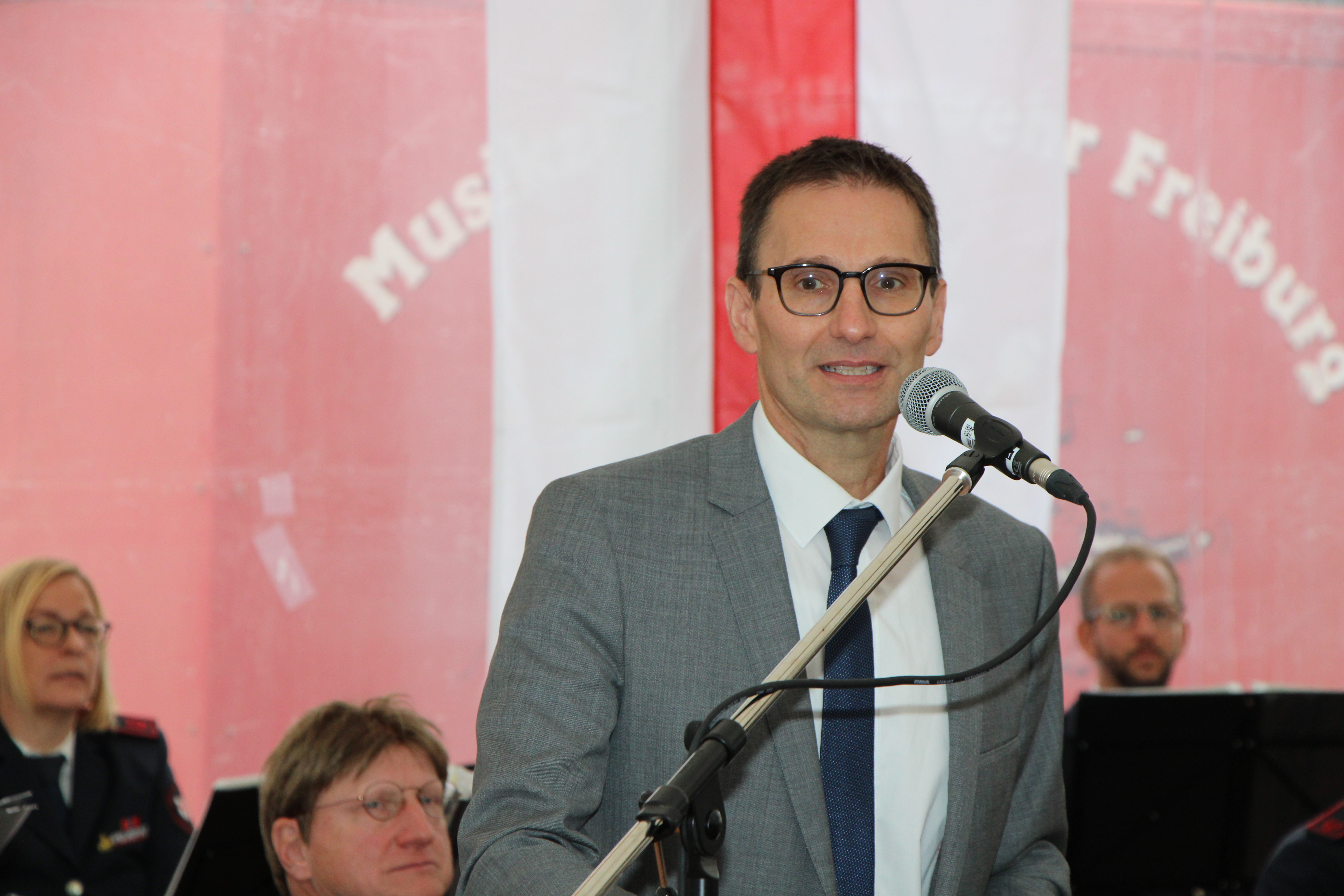 Zu den Bildern: An der Einweihungsfeier am 17.10.2021 im Gewerbepark Breisgau nahmen Staatssekretär Wilfried Klenk, Oberbürgermeister Martin Horn, Stadt Freiburg im Breisgau, Landrätin Dorothea Störr-Ritter, Erster Landesbeamter Martin Barth, Bürgermeister Stefan Breiter, Stadt Freiburg im Breisgau, Kreisbrandmeister Alexander Widmaier, leitender Branddirektor Ralf-Jörg Hohloch, Stadt Freiburg im Breisgau, Simone Mattedi (Architekturbüro kplan AG) Christoph Zachow, Vorsitzender Kreisfeuerwehrverband Breisgau-Hochschwarzwald und Markus Riesterer, Geschäftsführer Gewerbepark Breisgau, teil.