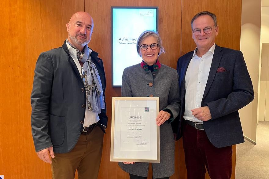 Bei der Aufsichtsratssitzung und Gesellschafterversammlung der Schwarzwald Tourismus GmbH (STG) im Konzerthaus in Freiburg am 16. November 2023 wurde Landrätin Dorothea Störr-Ritter (Breisgau-Hochschwarzwald) als Vorsitzende des Aufsichtsrats verabschiedet. Als Dank für ihre Verdienste um den Tourismus im Schwarzwald wurde sie zur Ehrenvorsitzenden ernannt. Geschäftsführer Hansjörg Mair gab einen Einblick in die Rekordzahlen der ersten drei Quartale des Jahres.