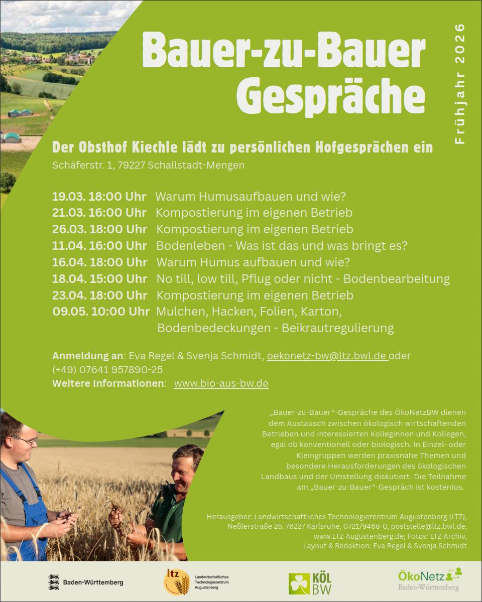 „Bauer-zu-Bauer“-Gespräche des ÖkoNetzBW dienen dem Austausch zwischen ökologisch wirtschaftenden Betrieben und interessierten Kolleginnen und Kollegen, egal ob konventionell oder biologisch.