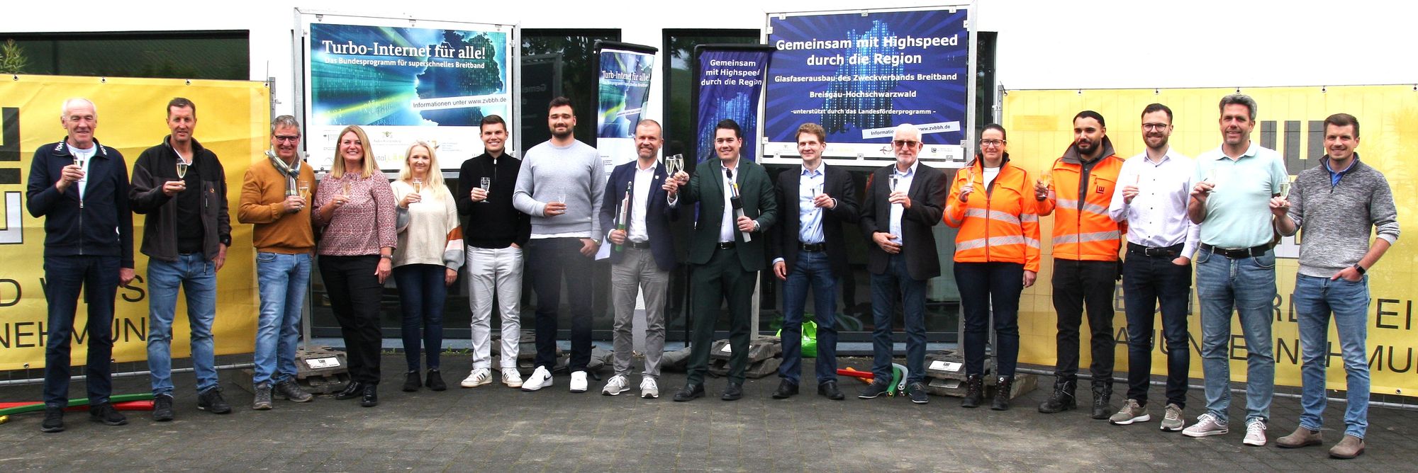 Nach intensiver Vorbereitungszeit, in der neben der Vorplanung mit der Gemeinde insbesondere der komplexe Verfahrensweg zur Beantragung von Bundes- und Landesfördermitteln sowie den EU-weiten Ausschreibungsverfahren beschritten wurde, haben am 5. Mai 2025 offiziell die Bauarbeiten zum Glasfaser-Breitbandausbau der unterversorgten Adressen im weißen Fleck in Pfaffenweiler mit einem symbolischen Spatenstich begonnen. Die Gemeinde Pfaffenweiler ist Mitglied im Zweckverband Breitband Breisgau-Hochschwarzwald, der für seine Mitglieder ein Glasfaser-Breitbandnetz errichtet.