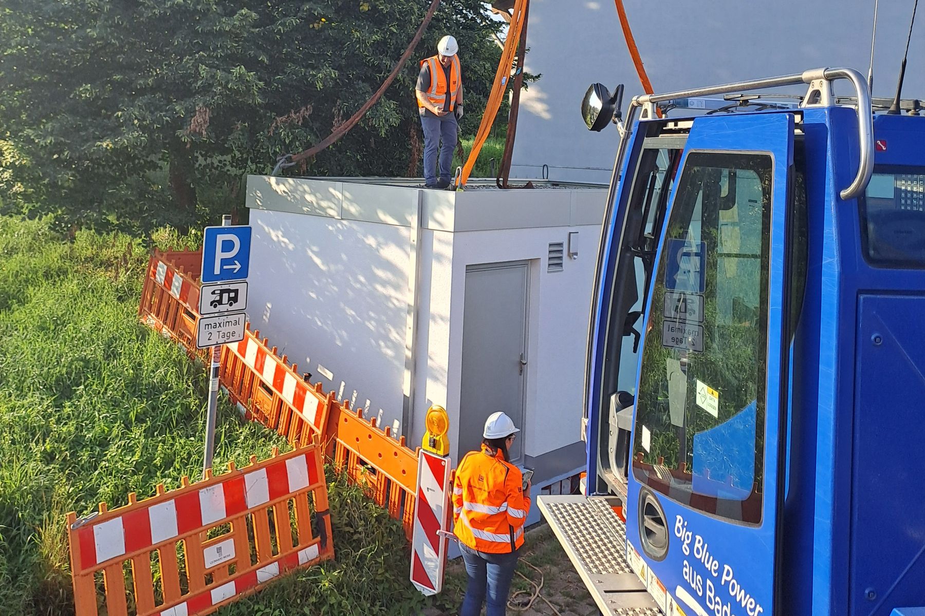 Mit der Aufstellung eines Verteilergebäudes, dem sogenannten „Point of Presence“ (PoP), durch den beauftragten mitplanenden Generalübernehmer Leonhard Weiss GmbH am 12. August 2025, ist nach dem symbolischen Spatenstich im Mai ein weiterer sichtbarer Meilenstein beim Ausbau der weißen Flecken in Ebringen erreicht.