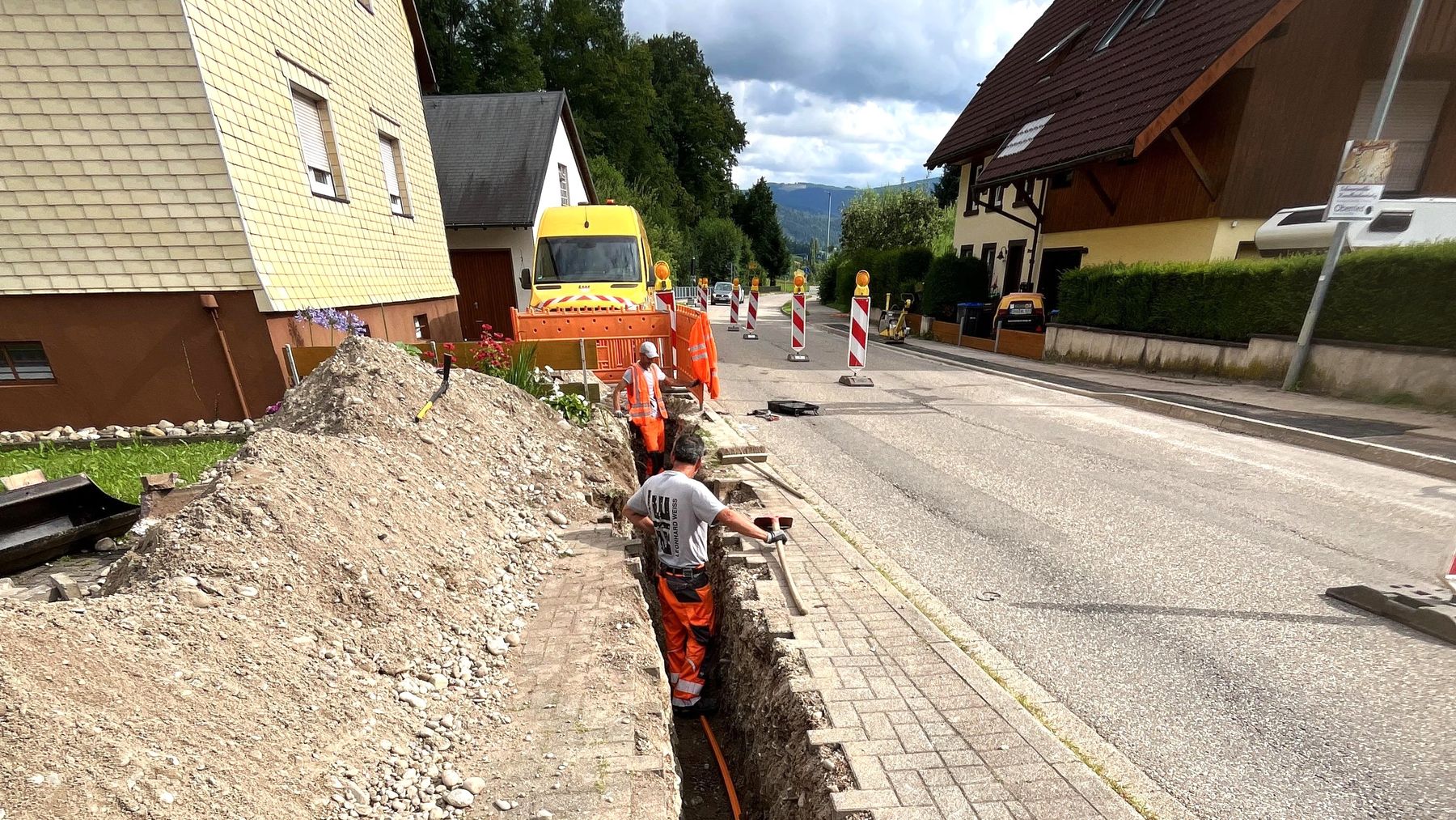 Tiefbauarbeiten zum Ausbau der unterversorgten Adressen im weißen Fleck in Stegen. Inzwischen sind die Arbeiten abgeschlossen, die Überlassung des Netzes an den Betreiber erfolgt in kurzer Zeit. (Foto: Leonhard Weiss)