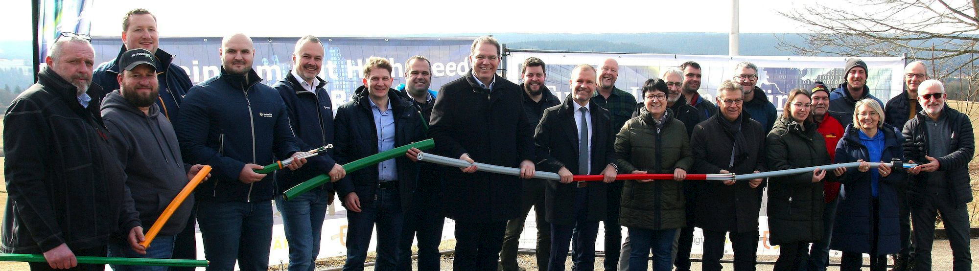 „Der Aufbau des Verbandsnetzes zur Versorgung der Bürgerinnen und Bürger im Verbandsgebiet schreitet deutlich voran. Wir feiern hier den einundzwanzigsten Spatenstich im Rahmen des Glasfaser-Breitbandausbaus im Verbandsgebiet.“, gab Verbandsvorsitzender Landrat Christian Ante bekannt.