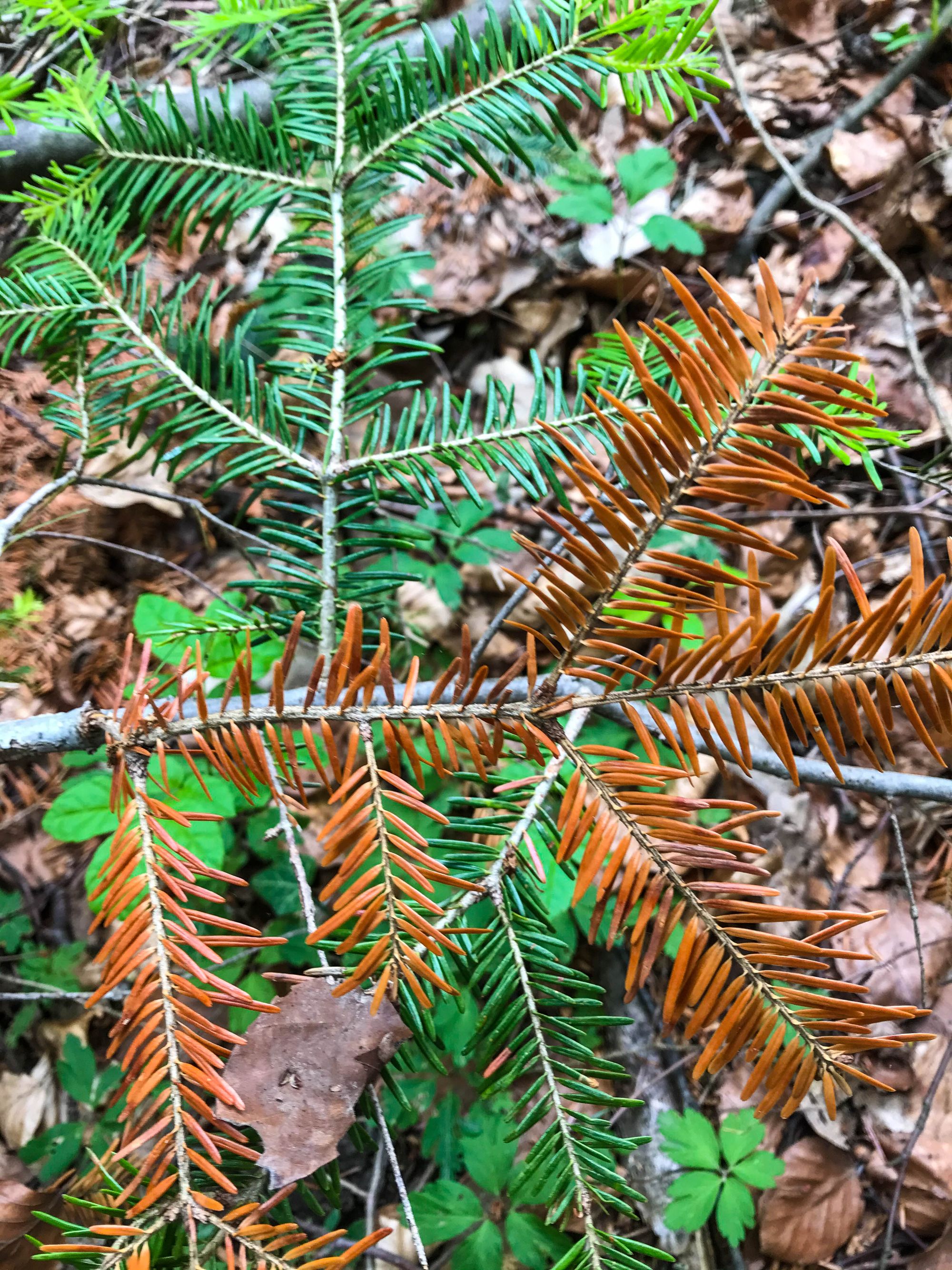 Obwohl die Weißtanne nachweislich besser mit Hitze und Trockenheit umgehen kann, als die Fichte, gerät auch sie zunehmend unter Stress. Insbesondere Weißtannen in den unteren Höhenlagen und an Sommerhängen bis ungefähr 800 Metern leiden unter der zunehmenden Trockenheit und Hitze und sind dadurch anfällig für den Befall mit dem Tannenborkenkäfer. Befallene Bäume müssen schnellstmöglich gefällt werden, damit sich der Borkenkäfer nicht weiter ausbreitet.
