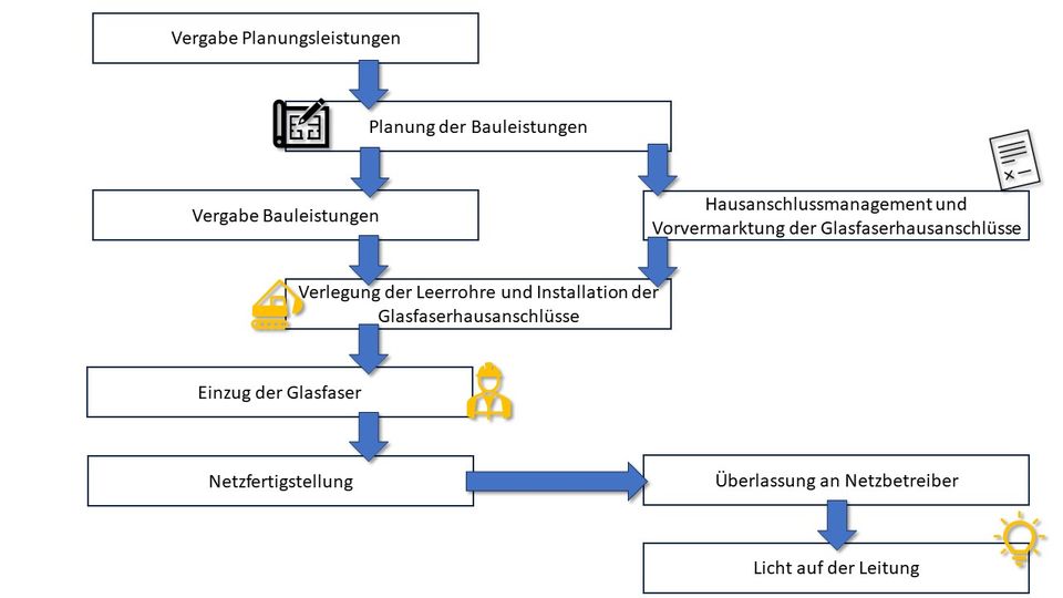 Bund und Land haben komplexe Verfahren aufgestellt, die der Verband erfolgreich durchlaufen hat, um mit einer Förderzusage in vorläufiger Höhe für die weißen Flecken die Ausbau-Planung in Au fortsetzen zu können. Mit Zusicherung der Mittel konnten die erforderlichen Leistungen ausgeschrieben werden.